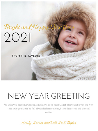 Wish your loved ones the happiest New Year with this adorable template. A few kind words and a lovely family picture will surely brighten their day.