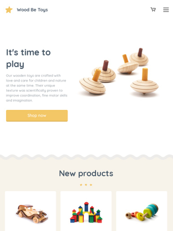 Offer your wooden toys, furniture or decorations to customers with this bright template. Organize your products into categories, add different payment and transport methods and make shopping in your store a breeze.
