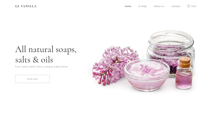 Delicate and dreamy, this template is ideal for selling handmade cosmetics! Add your products, set prices and start selling your one-of-a-kind beauty-care products online in just a few clicks.